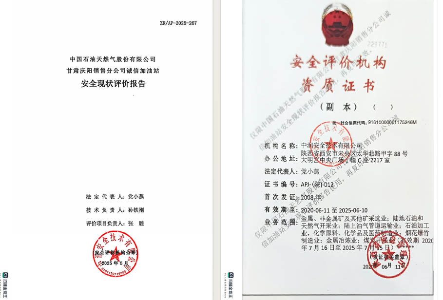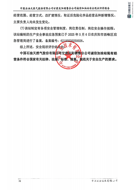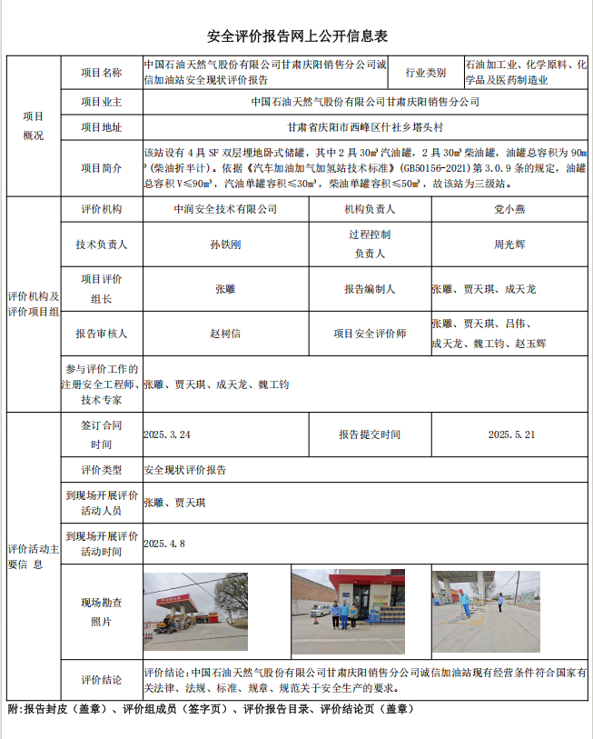 中國石油天然氣股份有限公司甘肅慶陽銷售分公司誠信加油站安全現(xiàn)狀評(píng)價(jià)報(bào)告